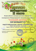 Всероссийский конкурс детского творчества, посвященному Международному женскому Дню 8 Марта "Аленький цветочек"